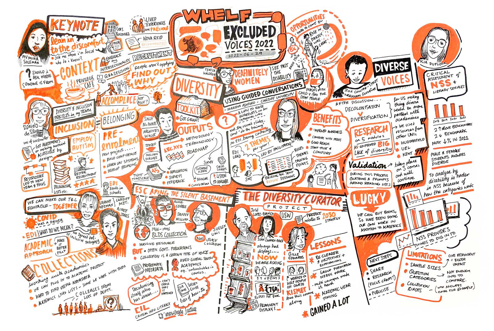 WHELF Excluded Voices 2022 Tagged: Live | Posted: Wed, Jun 29, 2022 Caption - Collection of Sketchnotes from WHELF Excluded Voices 2022 Large version for download Single day conference event run by WHELF Previous Next